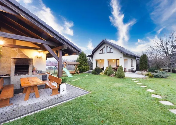 In de 1-slaapkamer Nowy Domek Pod Kogutkiem Villa Gorki Wielkie kunnen gasten van wandelen en paardrijden genieten op circa 700 meter afstand van Kosciol Rzymskokatolicki Pw. Wszystkich Swietych. Deze villa ligt op 7 km van Koscioł Jezusa Chrystusa Krola Wszechswiata en beschikt over een terras met uitzicht op de berg.